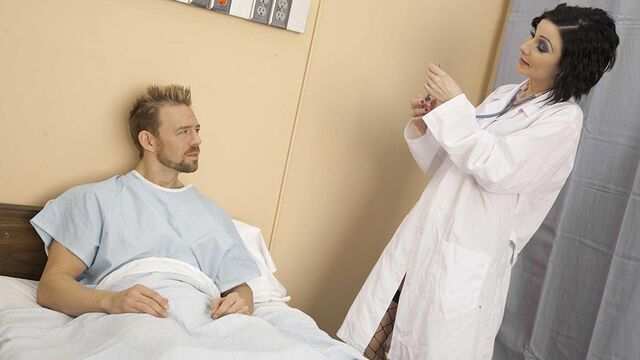 Этот мужчина уже целую неделю был на лечении в больницы и чувствовал себя очень плохо. А вот сегодня на дежурство заступила новая медсестра, которая с ним сотворила настоящее чудо. Молодая брюнетка сразу поняла, что этому пациенту ни какие уколы и таблетки не помогут. Поэтому опытная медсестричка оголила свои натуральные сиськи, а потом двумя руками за его большой член схватилась. Медсестра влажным минетом пациента в чувства привела, а чтобы ему стало еще лучше, киску для проникновения подставила. - Порно ролик доступен в формате HD 720p, SD 360p, LQ 240p.